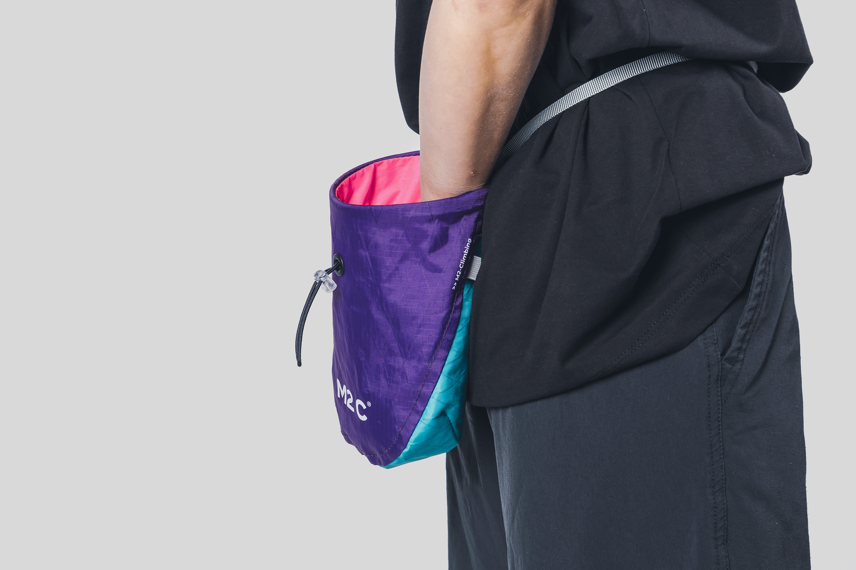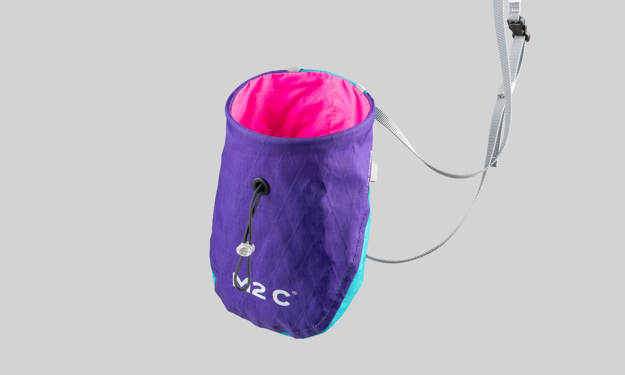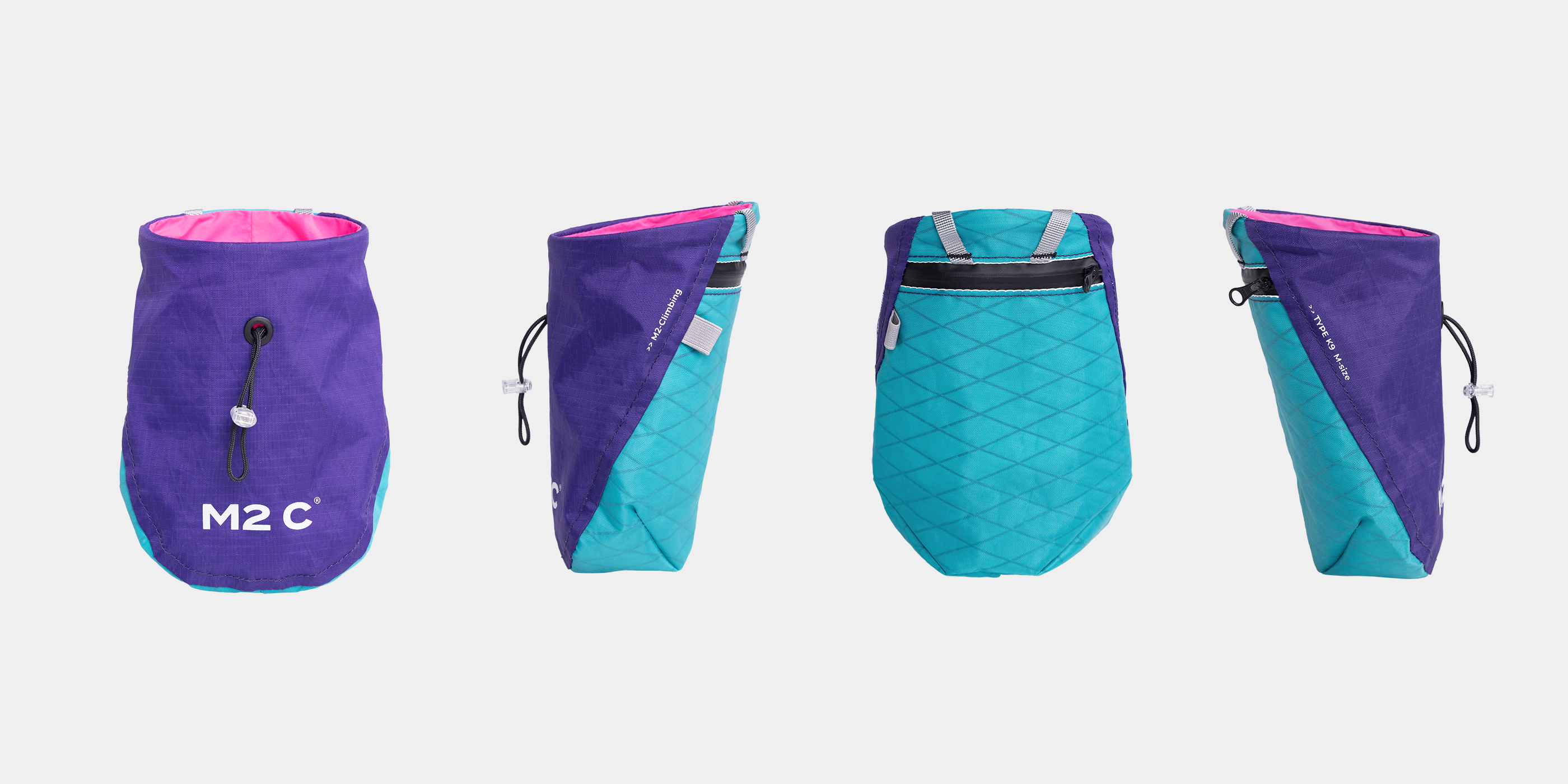 M2C K9 チョークバッグ は、上部が広く下部が狭い、傾斜した開口部を持つ競技向けの3D立体デザインのクライミング用チョークバッグです。