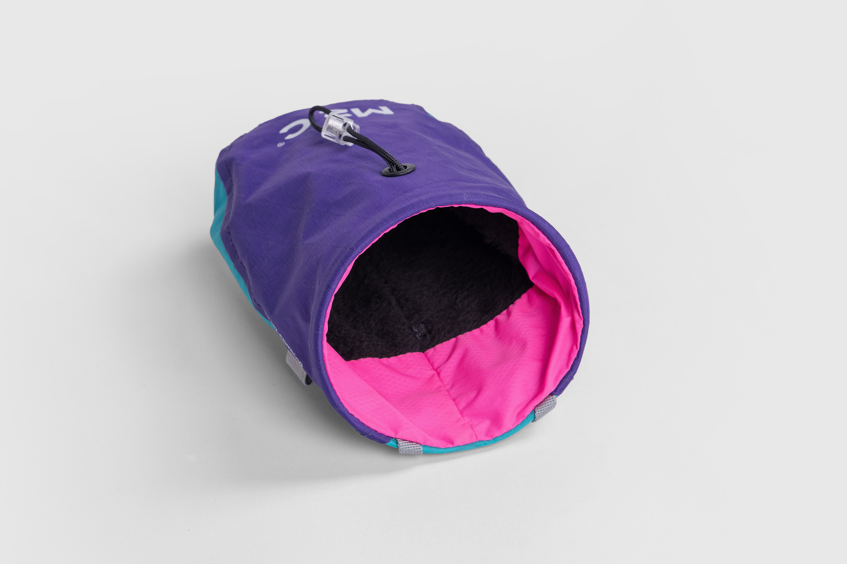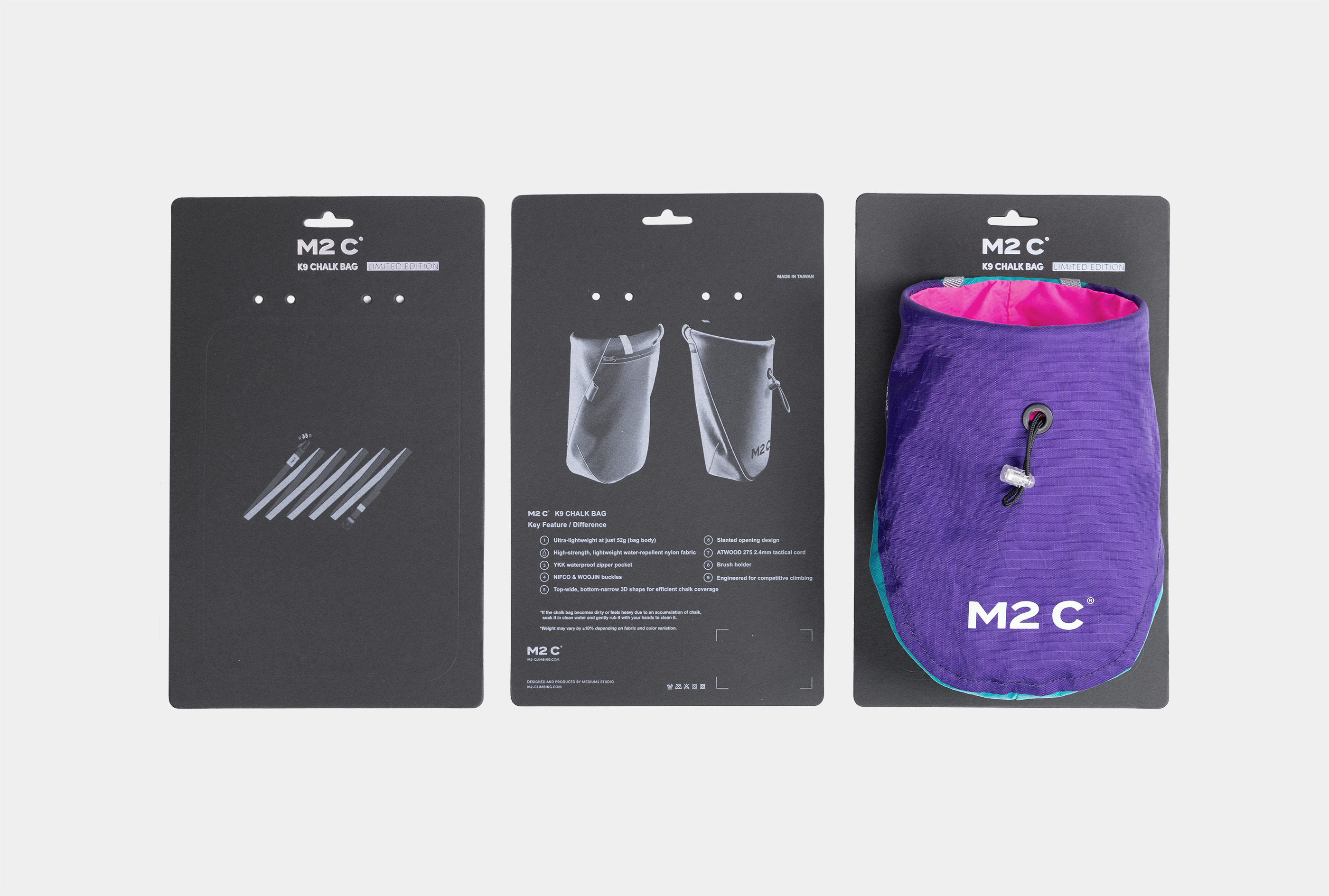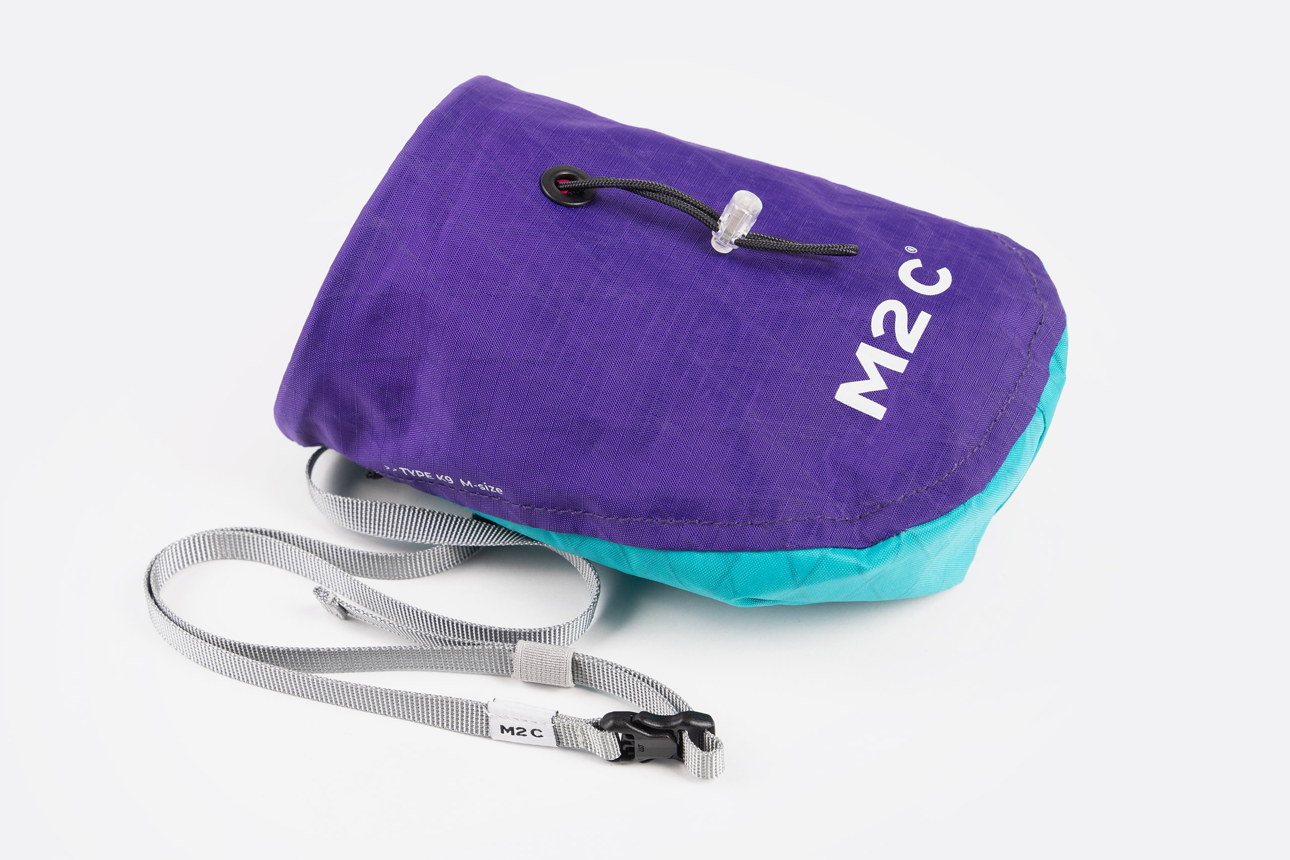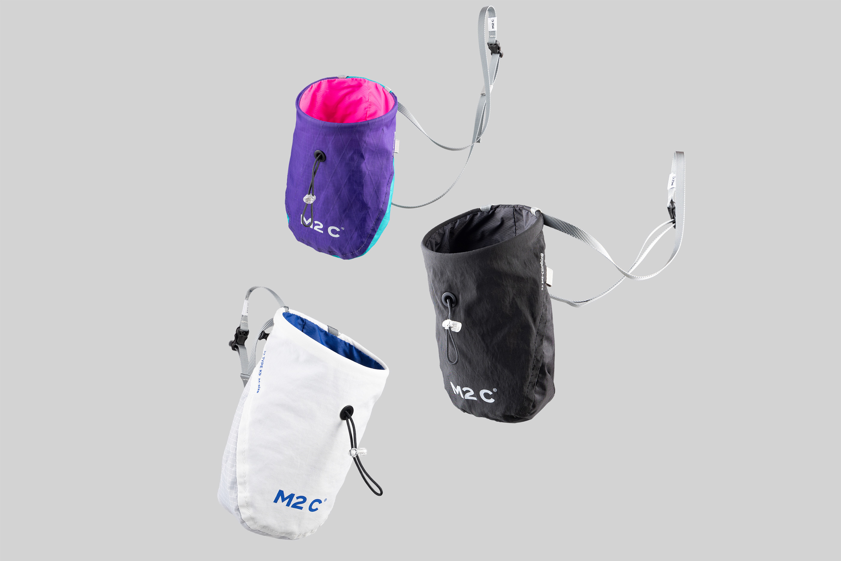 M2C K9 チョークバッグ は、上部が広く下部が狭い、傾斜した開口部を持つ競技向けの3D立体デザインのクライミング用チョークバッグです。