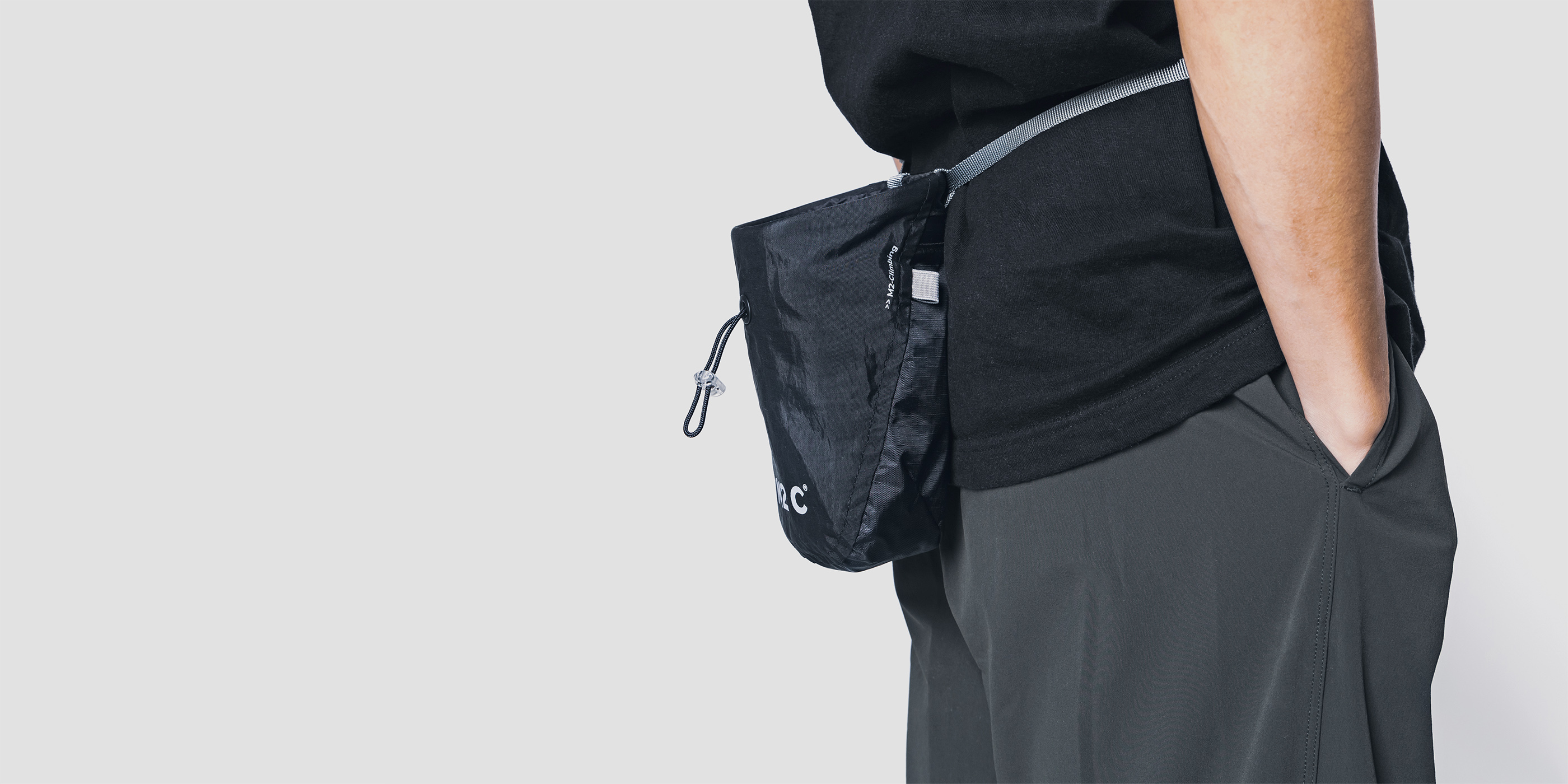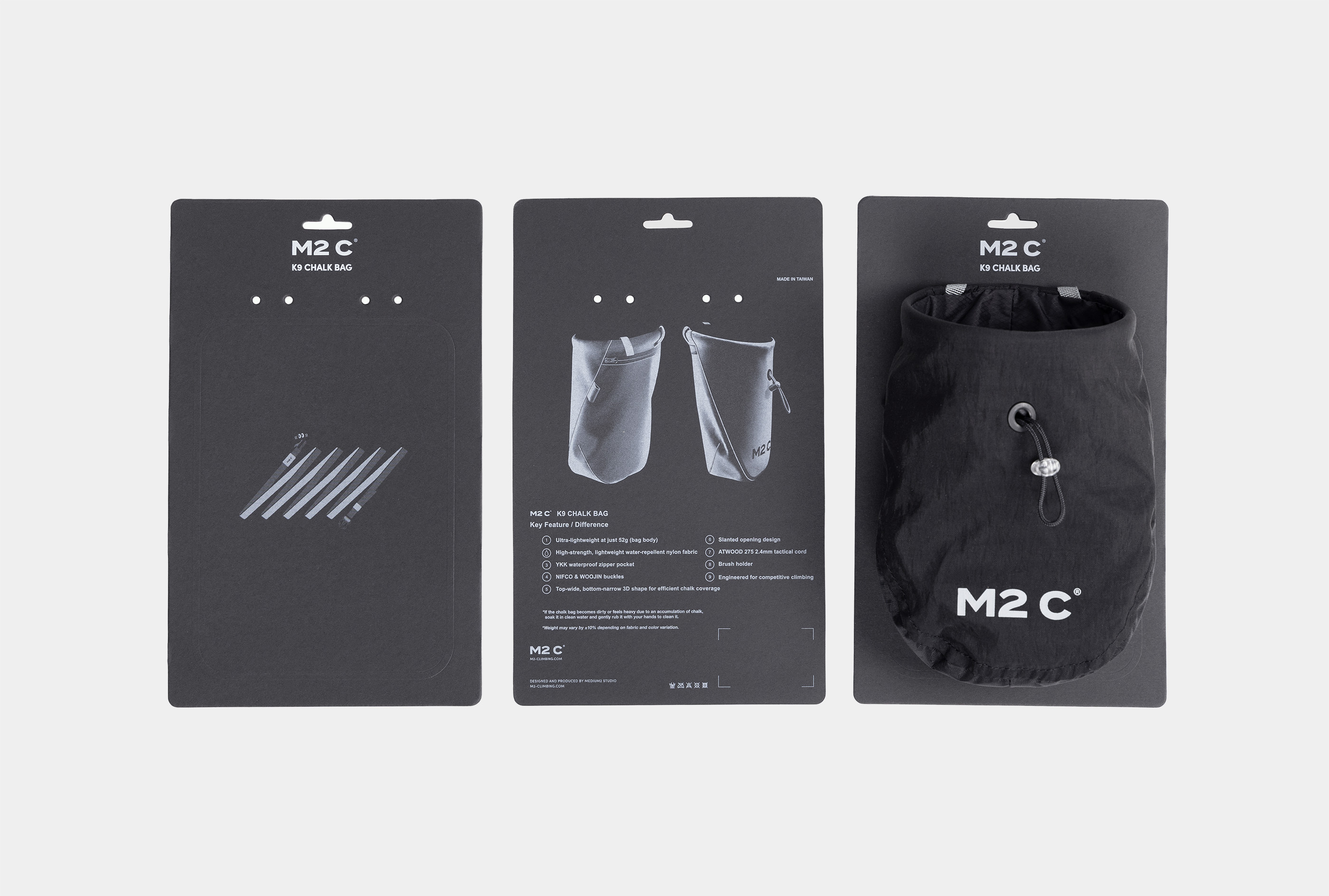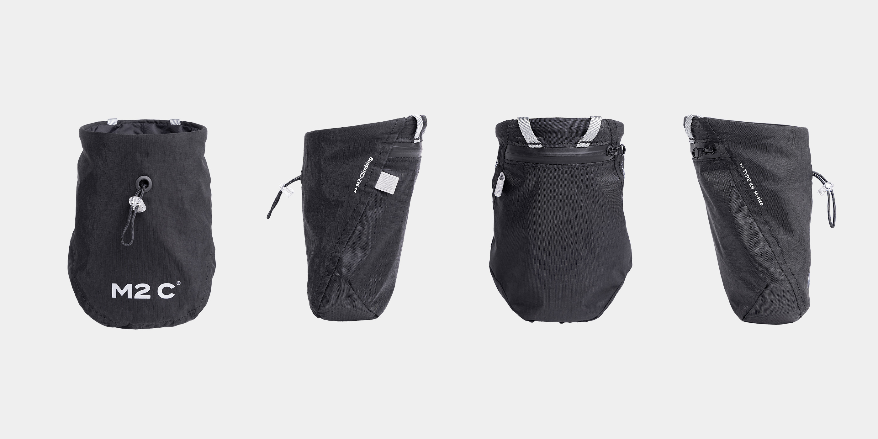 M2C K9 チョークバッグ は、上部が広く下部が狭い、傾斜した開口部を持つ競技向けの3D立体デザインのクライミング用チョークバッグです。